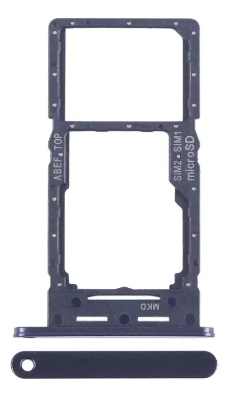 Bandeja porta SIM compatible Samsung A25. Permite el alojamiento seguro de la tarjeta SIM en el dispositivo. Ideal para reemplazo en caso de pérdida, daño físico o fallas de lectura de la SIM. Fabricada con materiales resistentes para un ajuste preciso y duradero.